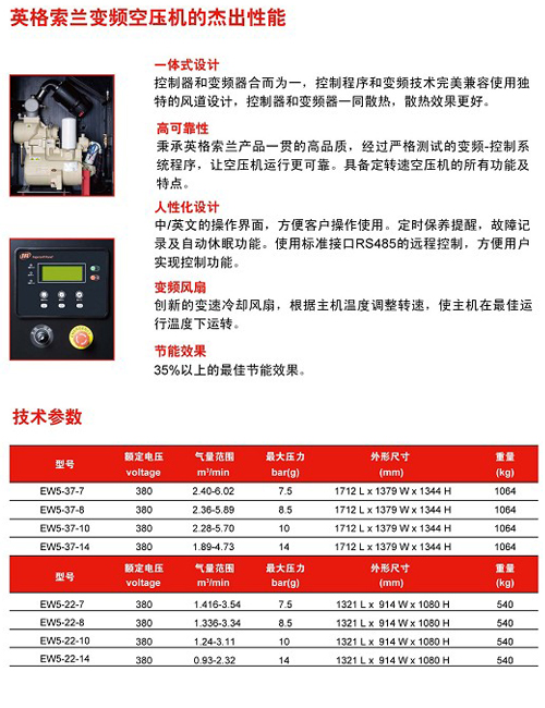 22KW&37KW变频螺杆式空气压缩机 在大多数生产型企业中,为压缩空气所耗费的电能约占全部电能消耗的10%-35%。在我国,80%的用户空压机全载运行比例为40%-80%,平均比例为66%,而世界平均比例为79%,因此节能空间很大。