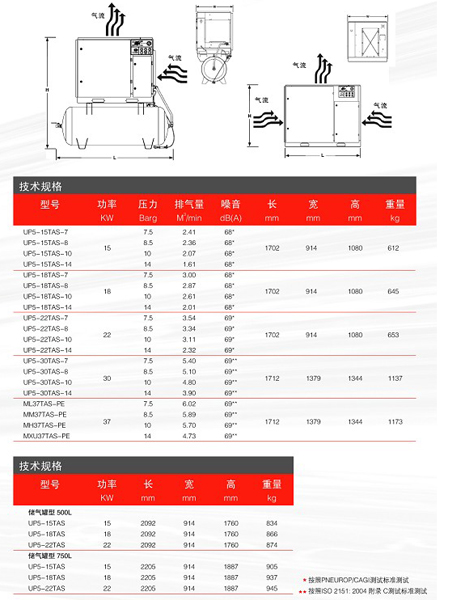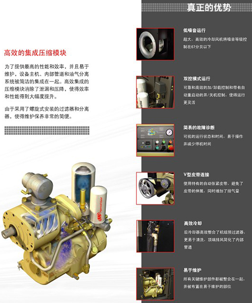 15-37KW TAS series screw compressors in order to provide maximum performance and efficiency, and ease of maintenance, equipment hosts, internal pipelines and oil and gas separation systems are brief introduction of integrated together. Efficient integration of the compression module eliminates leaks and pressure drops, making the efficiency and performance improved significantly.