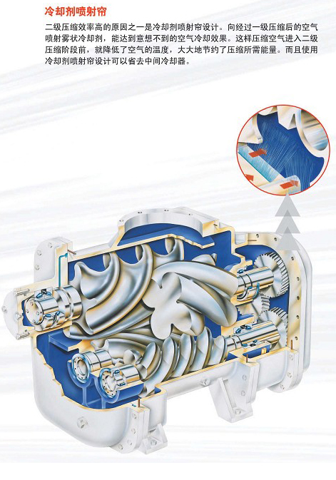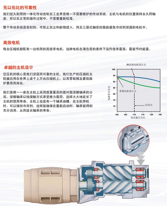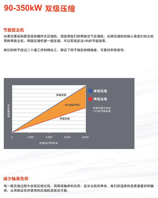185-350KW single-stage compressor 90-350KW bipolar integrated compression our durable gear in the industrial sector is the only maintenance-free drive system. Host and the location of the motor to maintain a permanent coaxial, so during normal operation, does not require re-calibration.