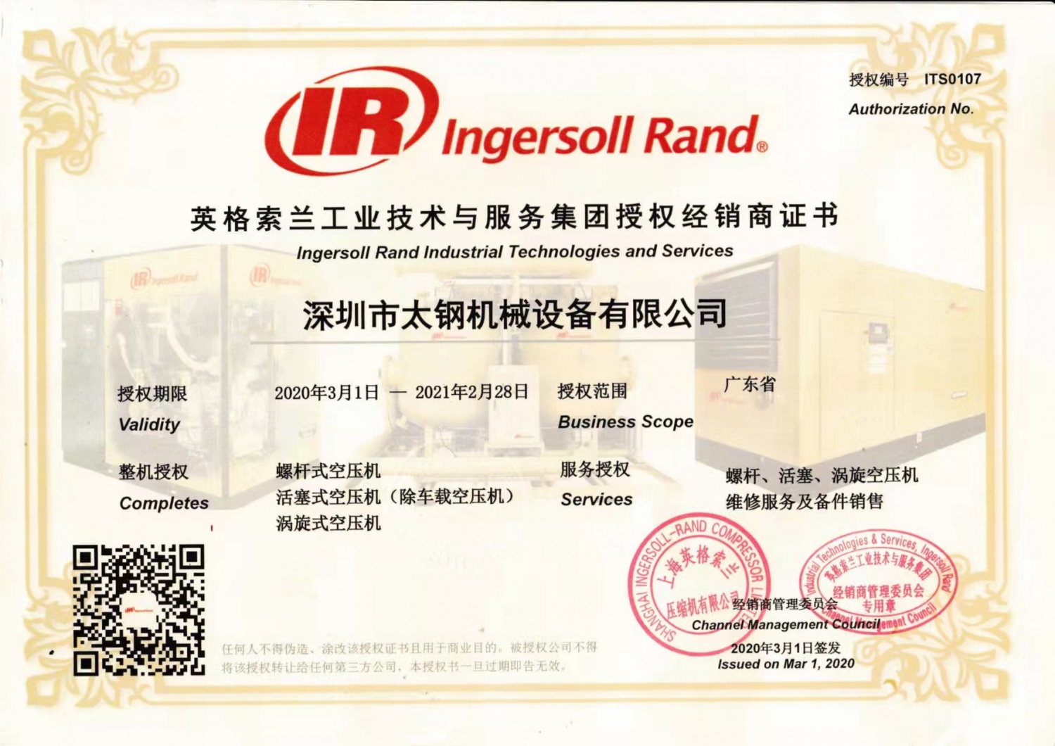 Shenzhen Taigang Machinery Equipment Co., Ltd. is a professional company specializing in agency, design, planning, sales and maintenance of air compressor systems. Founded in the 19th century by the American Ingersoll Rand Company (founded in the 19th century by the inventor of the air compressor, Simon Ingersoll, serving the global industry has entered the third century, and has now become a multinational company with a turnover of billions of dollars. ) Authorized five-star agent of Ingersoll Rand series products....