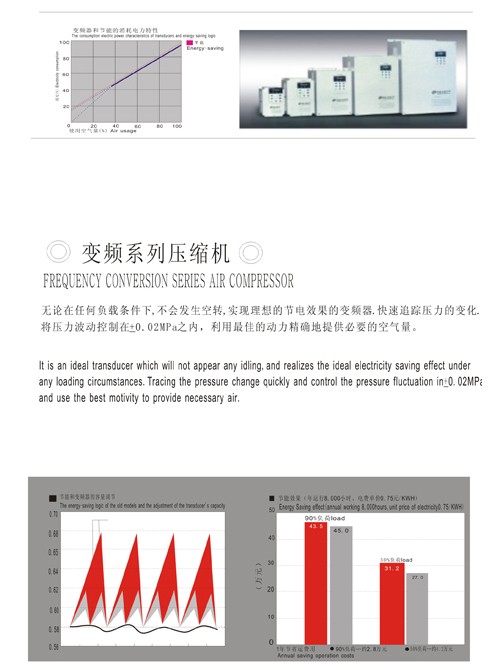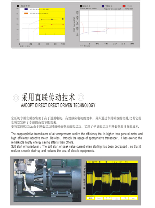 Air compressor inverter to achieve a higher universal motor, high efficiency induction motor, the other through a dedicated frequency are used, other than the drive to play a superior energy efficient results.