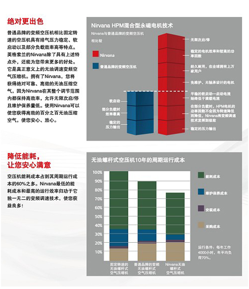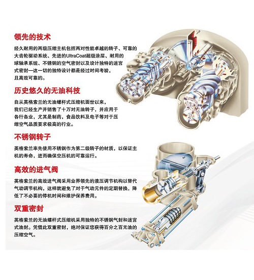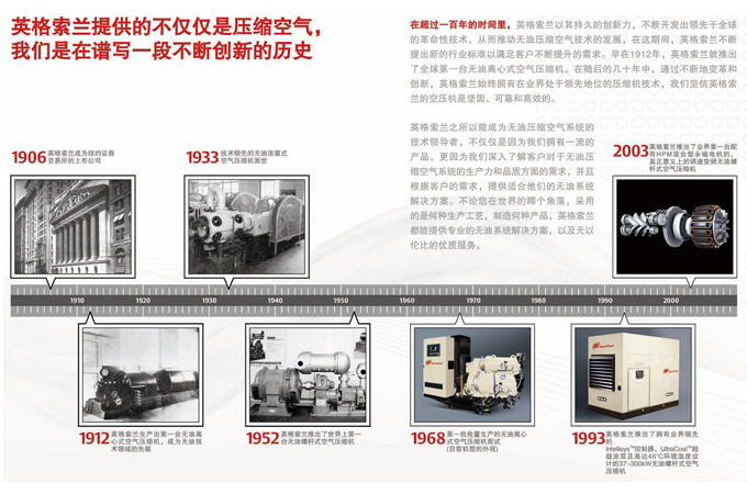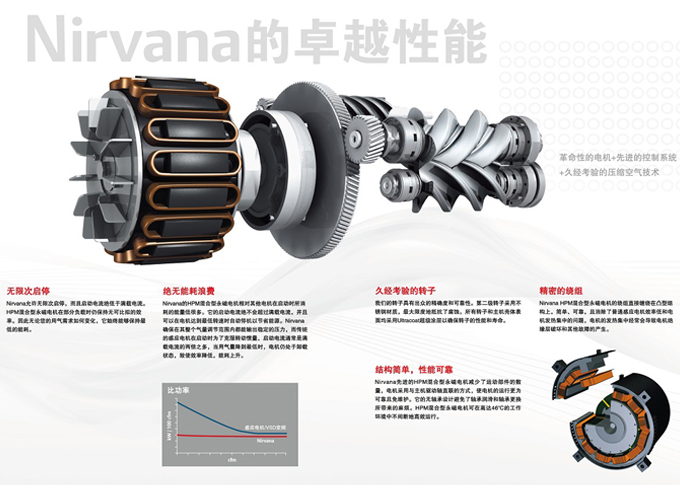 Nirvana Oil Control Frequency Screw Compressors in more than one hundred years, Ingersoll Rand for its long-lasting innovation, and constantly develop a global leader in the revolutionary technology, thus promoting oil-free compressed air technology development, and in this period, Ingersoll Rand have made new industry standards in order to meet rising customer demand.